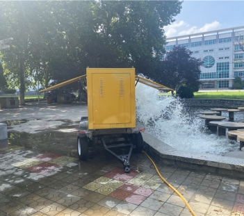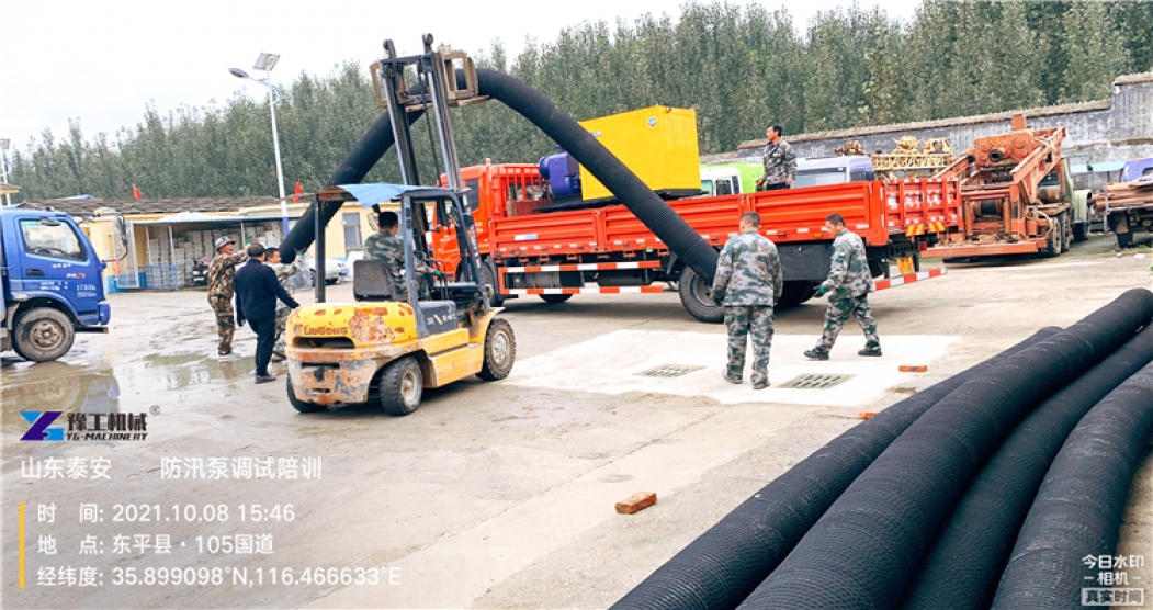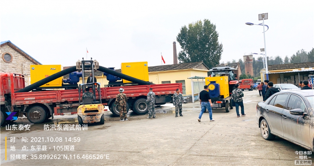 为提高抗洪抢险的能力,泰安防汛相关部门采购豫工1000型大流量防汛泵3台,以最快的方式开展救援救助作业。